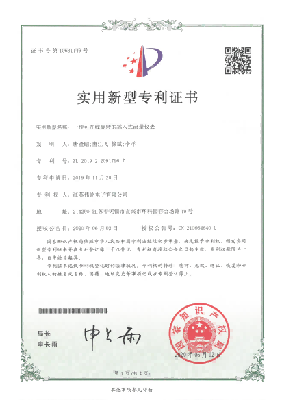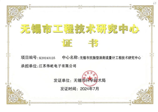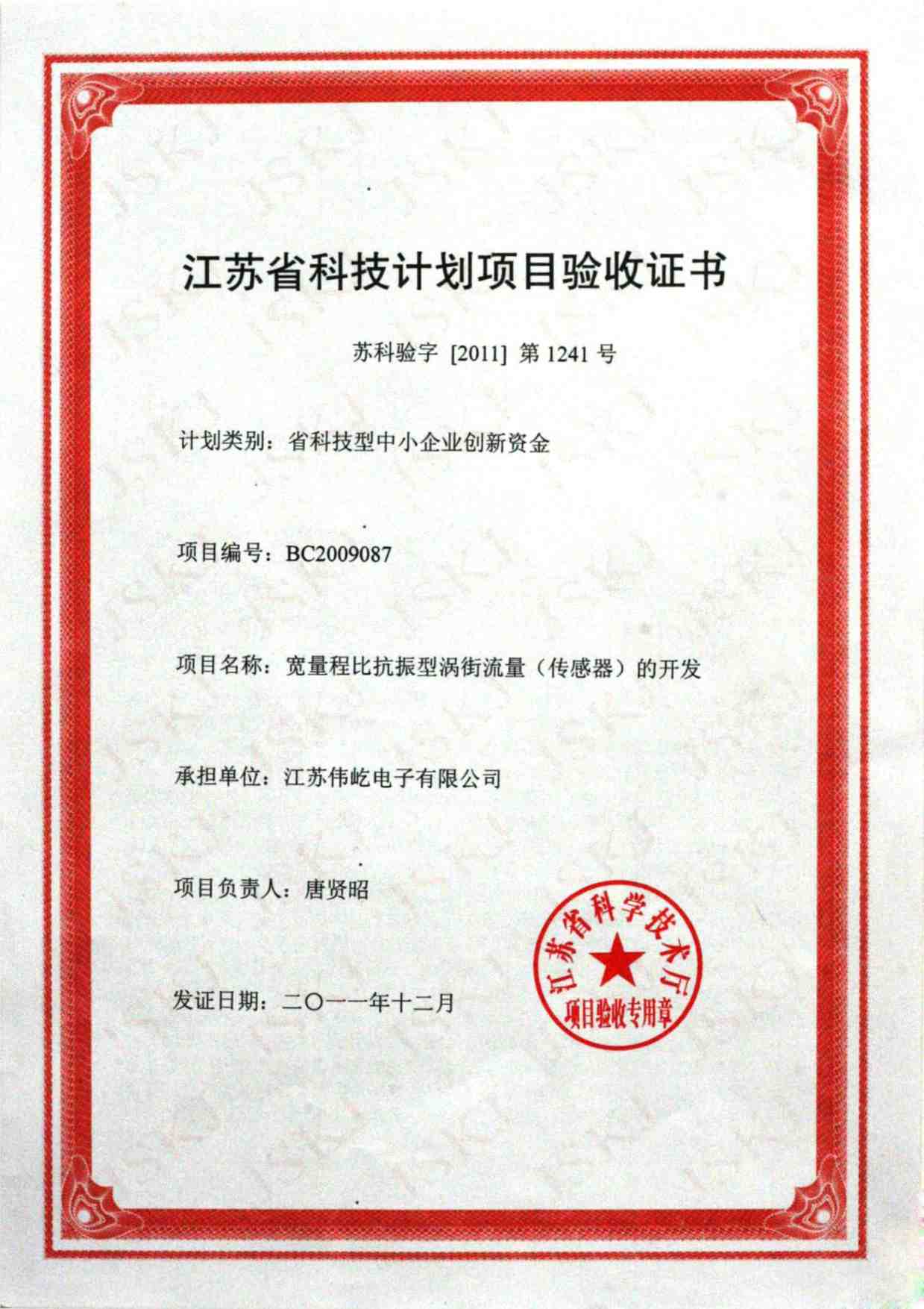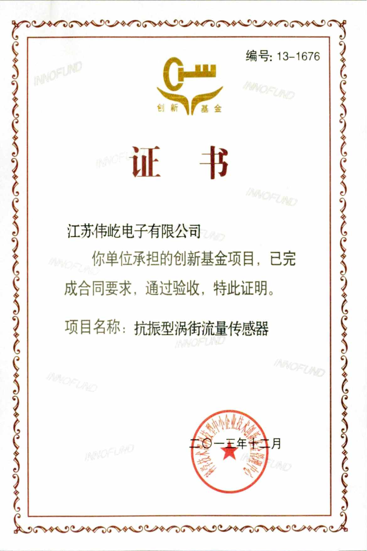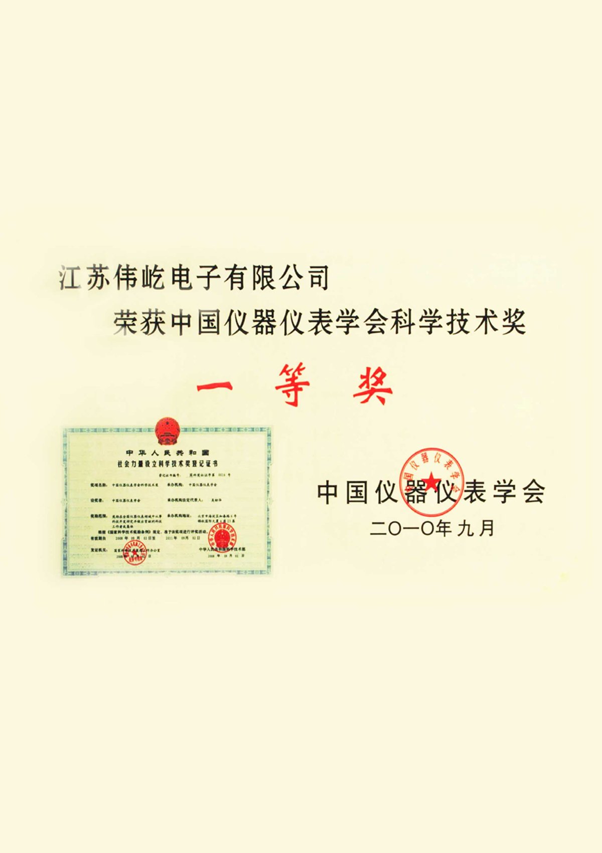 2010年,在国家工业自动化仪表检测中心型式试验检测数据基础之上,经科技部一级查新机构全球查新、中国仪器仪表学会组织权威专家鉴定,确认公司主产品——“Wv系列抗振型涡街流量计”在抗振动干扰能力、量程比、压力损失方面处国际先进水平,并于同年获中国仪器仪表学会科学技术奖一等奖。