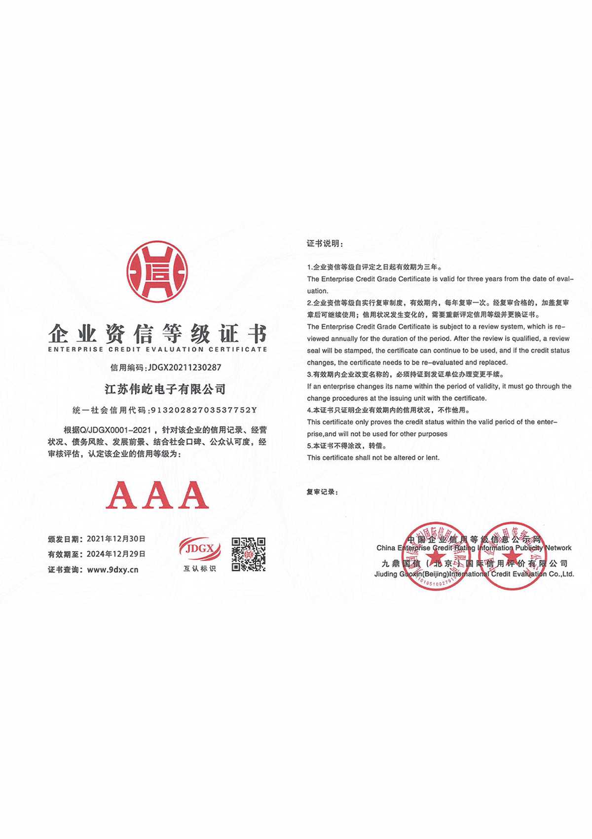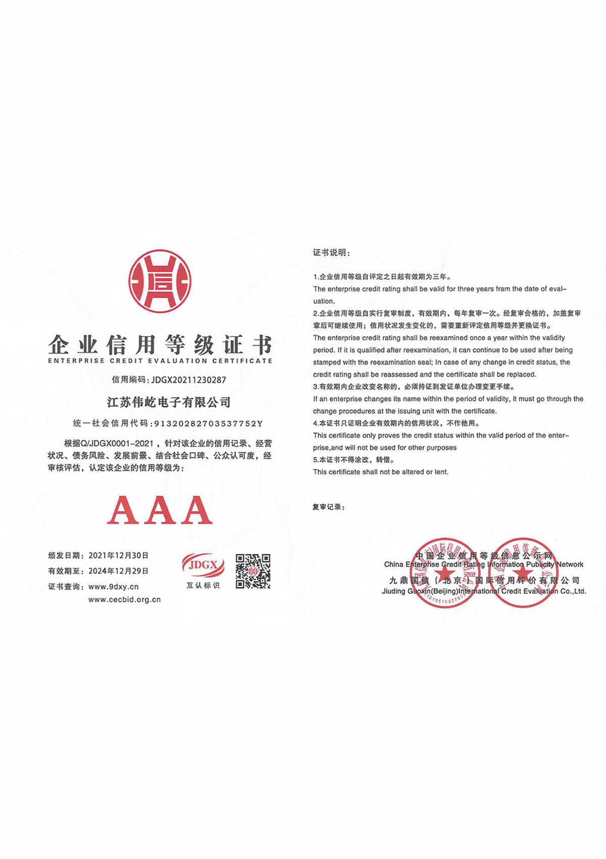作为国家级高新技术企业,在严格执行基于ISO9001:2000质量体系的管理制度基础上,全员贯彻“感恩客户,珍视每一份订单”,连续12年至今,连获江苏省重合同守信用AAA级评定。企业发展稳健,自1999年起,连获AAA级银行资信等级评定。