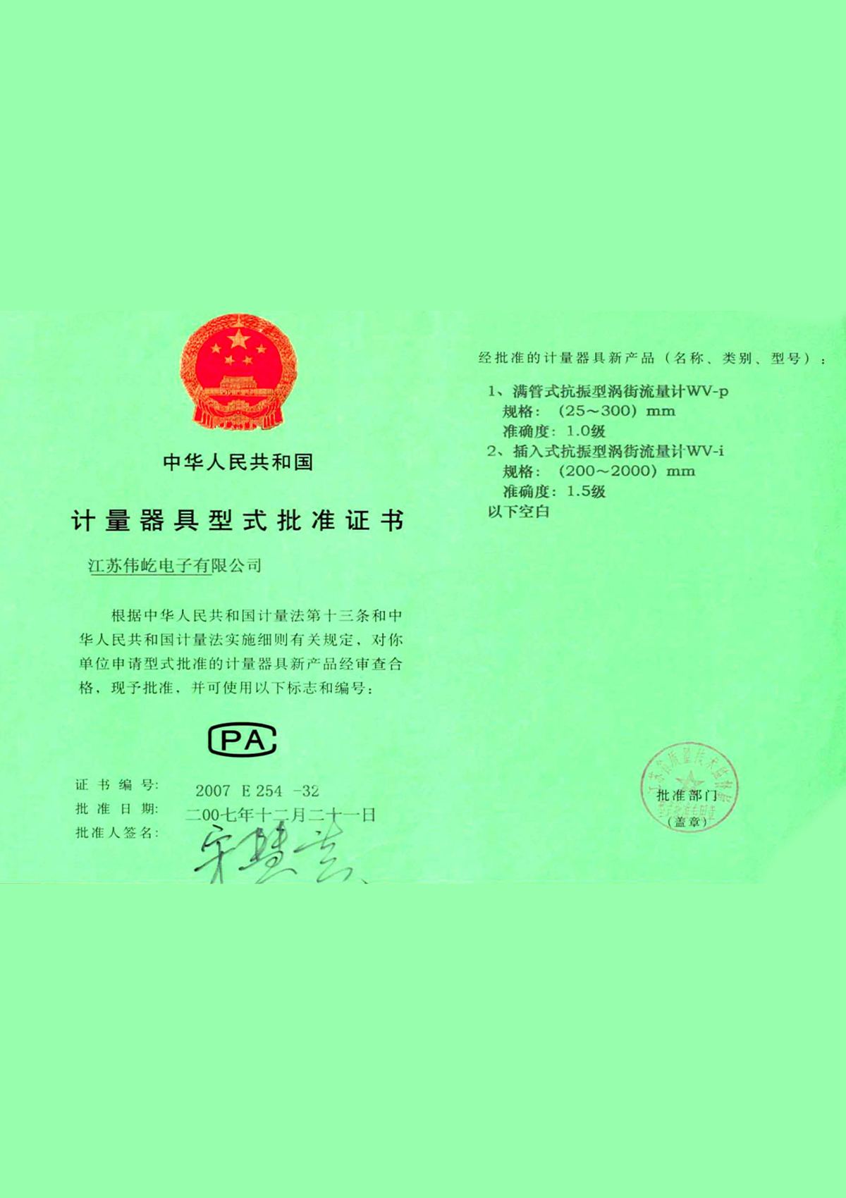 获颁“中华人民共和国制造计量器具许可证“、”中华人民共和国计量器具型式批准证书“。