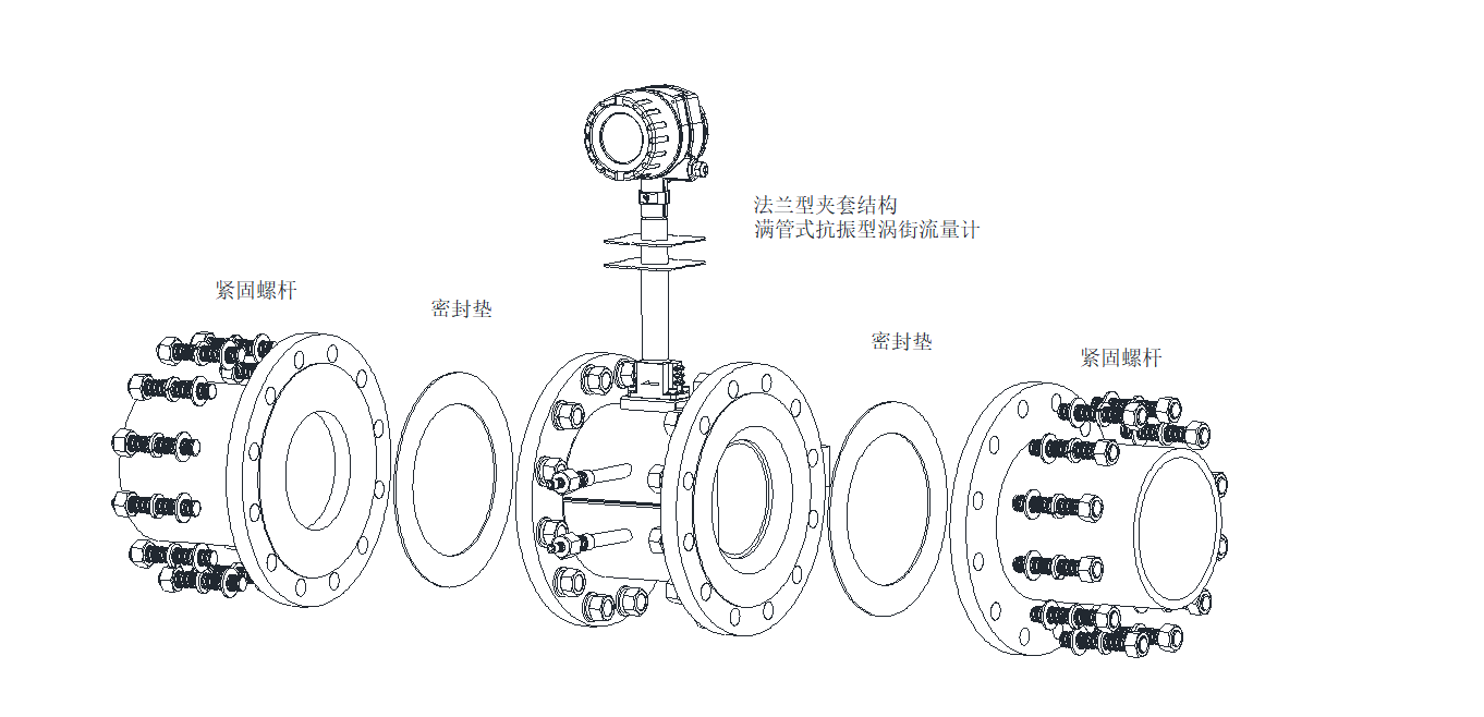 Wv-pJ型:法兰型夹套结构满管式抗振型涡街流量计